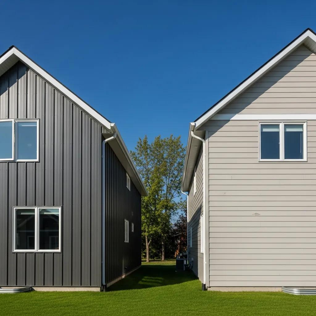 Corrugated panels add strength and a modern, industrial look suited to houses and outbuildings. Board‑and‑batten mimics vertical wood with raised seams for a more traditional appearance. Both styles are durable and come in many colors to match architecture.