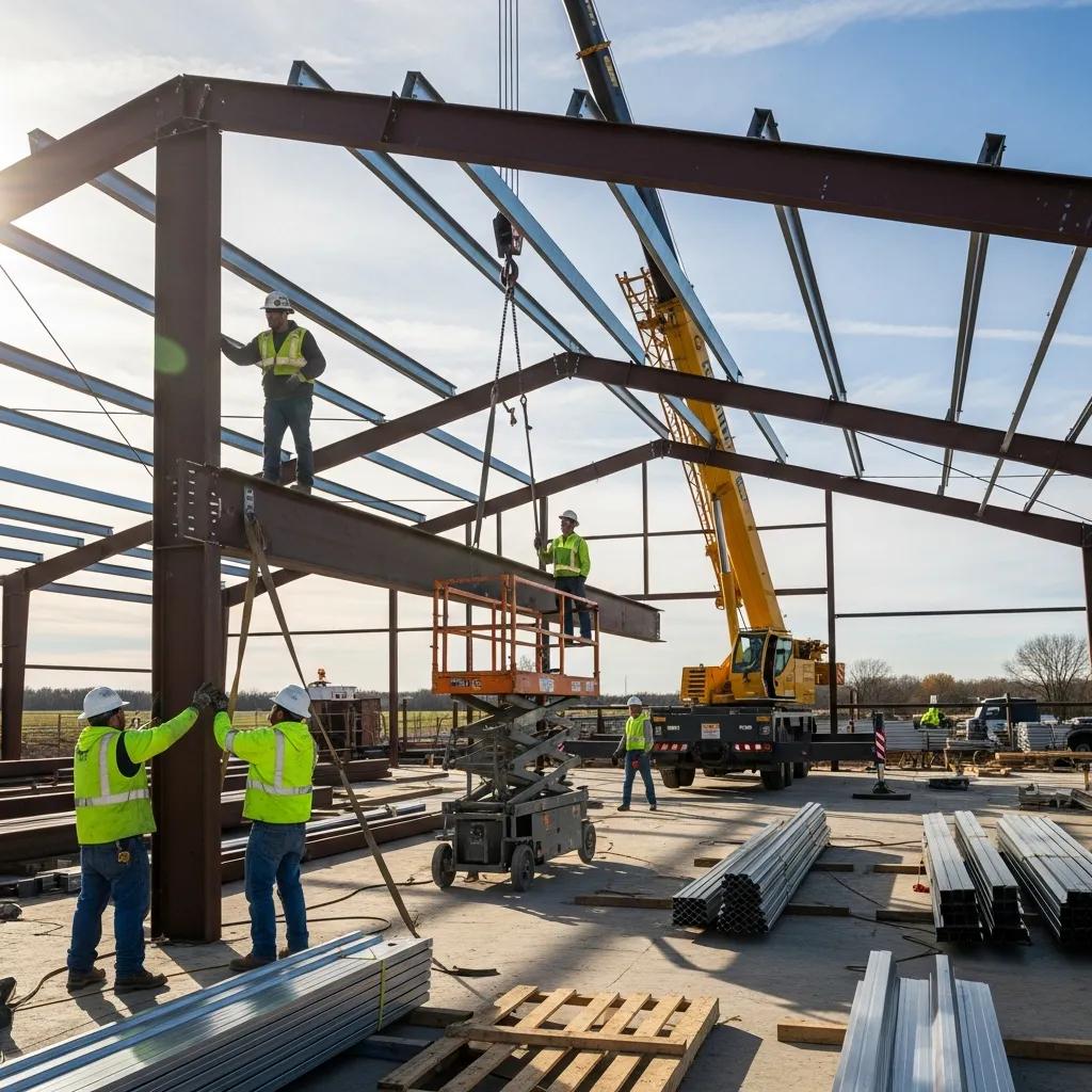 Foundation: A proper foundation is meticulously poured or prepared to support the robust steel frame, ensuring long-term stability.